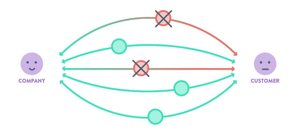 Den här poängen har ofta hamnat i skymundan i modernt snack om kundresor. Vi pratar om kontaktpunkt efter kontaktpunkt och om att vara konsekventa och genomtänkta i varje punkt. Men behövs interaktionen över huvud taget? Är det bara vi som prackar på kunden interaktioner hen faktiskt inte upplever skapar värde?