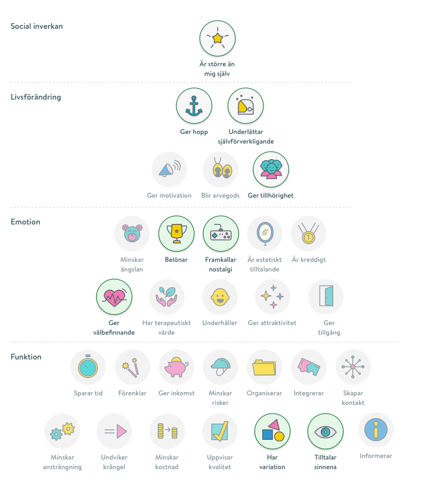 Det är möjligt att bristen på kopplingen till varumärkets värden visar sig här. Hade en organisation som är känd för att göra gott, till exempel Röda korset, fått lika negativa reaktioner på Facebook-tvång i en liknande app? Gissningsvis inte. Röda korset har för länge sedan visat att de levererar på alla nivåer i pyramiden, från “skapar kontakt” via “minskar ängslan” och “ger hopp” ända upp till “större än mig själv”. En satsning från dem vore äkta och underbyggd. Att reaktionerna mot Läkerol blir så starka tyder på att folk ännu inte uppfattar Läkerol som osjälviskt och samhällsnyttigt, utan som först och främst ett företag som vill tjäna pengar.