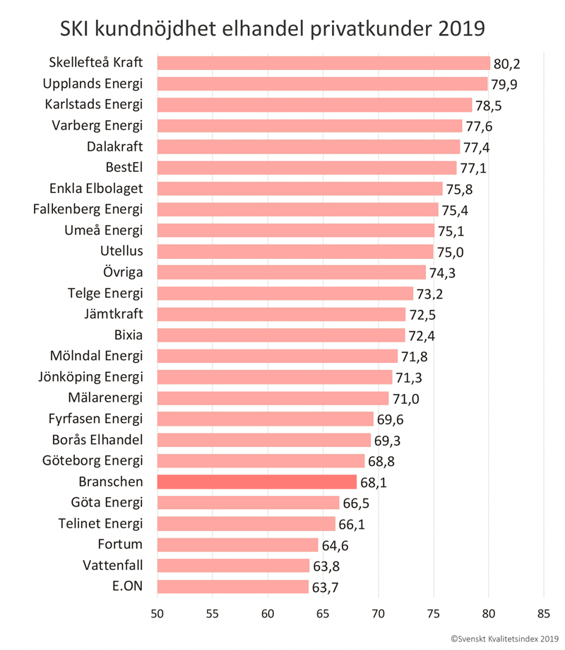 75 är alltså den magiska siffran. 2019 så är det bara 10 bolag som klarar det. Resten ligger alltså risigt till och riskerar att tappa sina kunder. Snittet för branschen ligger på 68,1 för 2019.