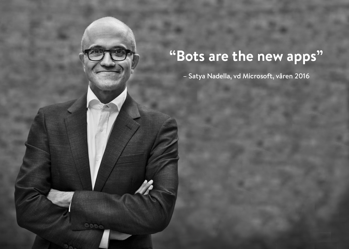 Så tänker du bara chatbot tänker du för smalt. Den här revolutionen handlar om mycket mer än att ersätta människor i chattar med botar. Den handlar om att omvandla hela gränssnitt till konversationer. Med det synsättet inser man snart de enorma möjligheterna.
