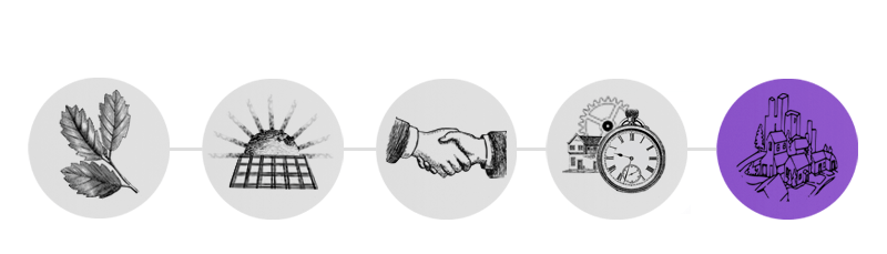 Under den femte fasen kommer det nya konsumentbeteendet spridas till hela grupper eller till och med till hela samhällen som jobbar tillsammans för att designa ett energisystem som optimerar såväl systemets pålitlighet som kostnaden för alla inblandade. Nu kommer stora grupper av människor ha helhetssystem som täcker både uppvärmning och transport.