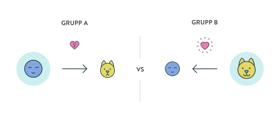 I ett hypotetiskt experiment får två grupper varsin bur med en hundvalp i tillsammans med instruktionen: få hunden att vifta på svansen.