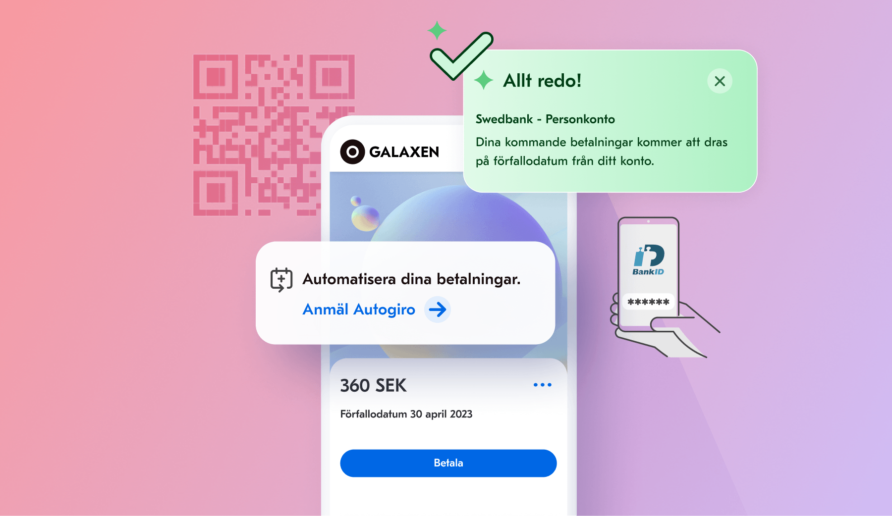 Billogram erbjuder en digital process där dina kunder kan aktivera automatiska betalningar, exempelvis autogiro, på mindre än en minut. Kunden klickar på en länk via e-post, sms eller sin digitala faktura (för pappersfakturor kan länken läggas i en QR-kod). Därefter identifierar sig kunden mot sin bank och anger konto. Redan samma månad börjar den automatiska betalningen gälla.
