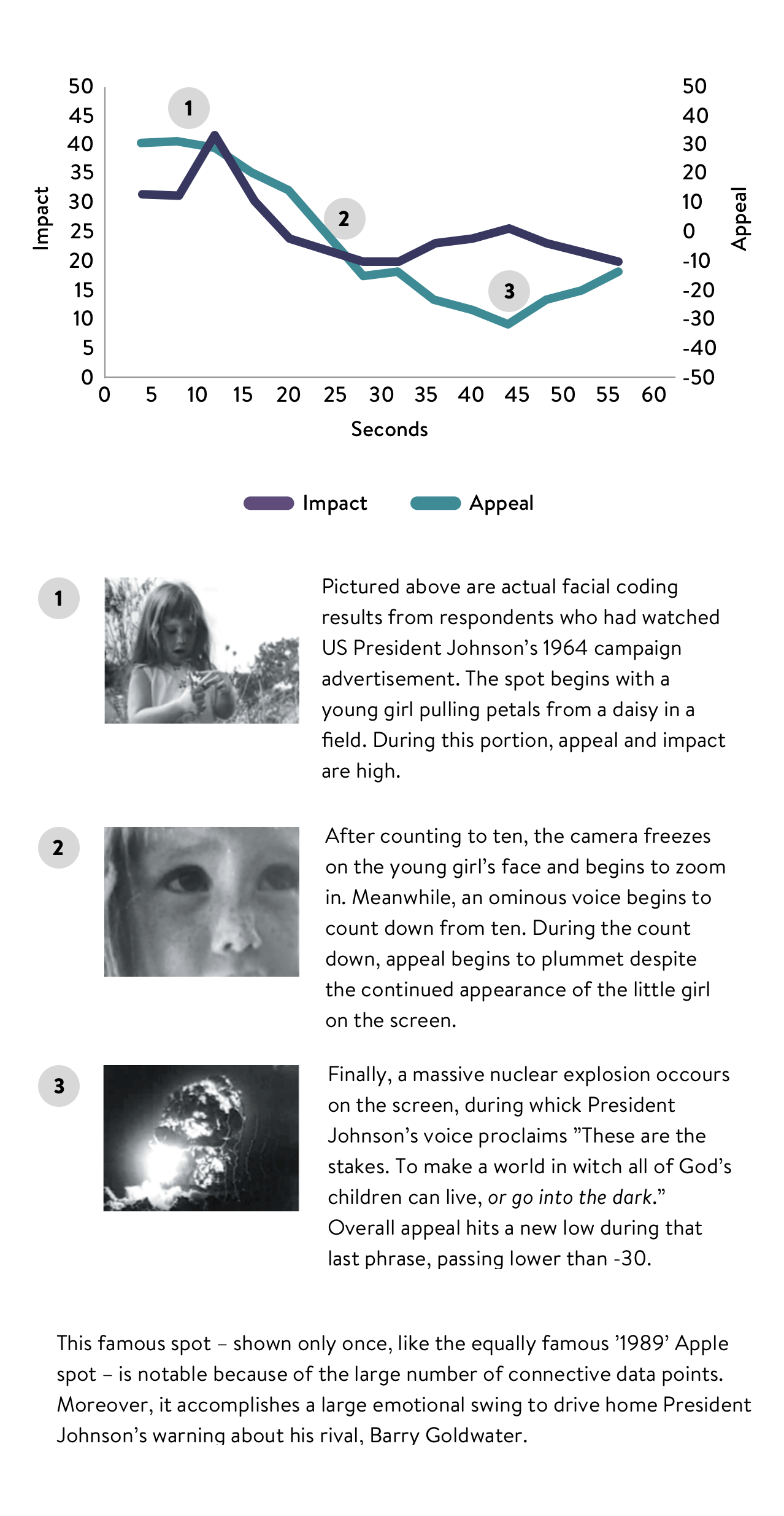 Här låter jag återigen Emotionomics stå för ett kraftfullt exempel där de studerat amerikanska presidenten Lyndon B. Johnsons reklamfilm.