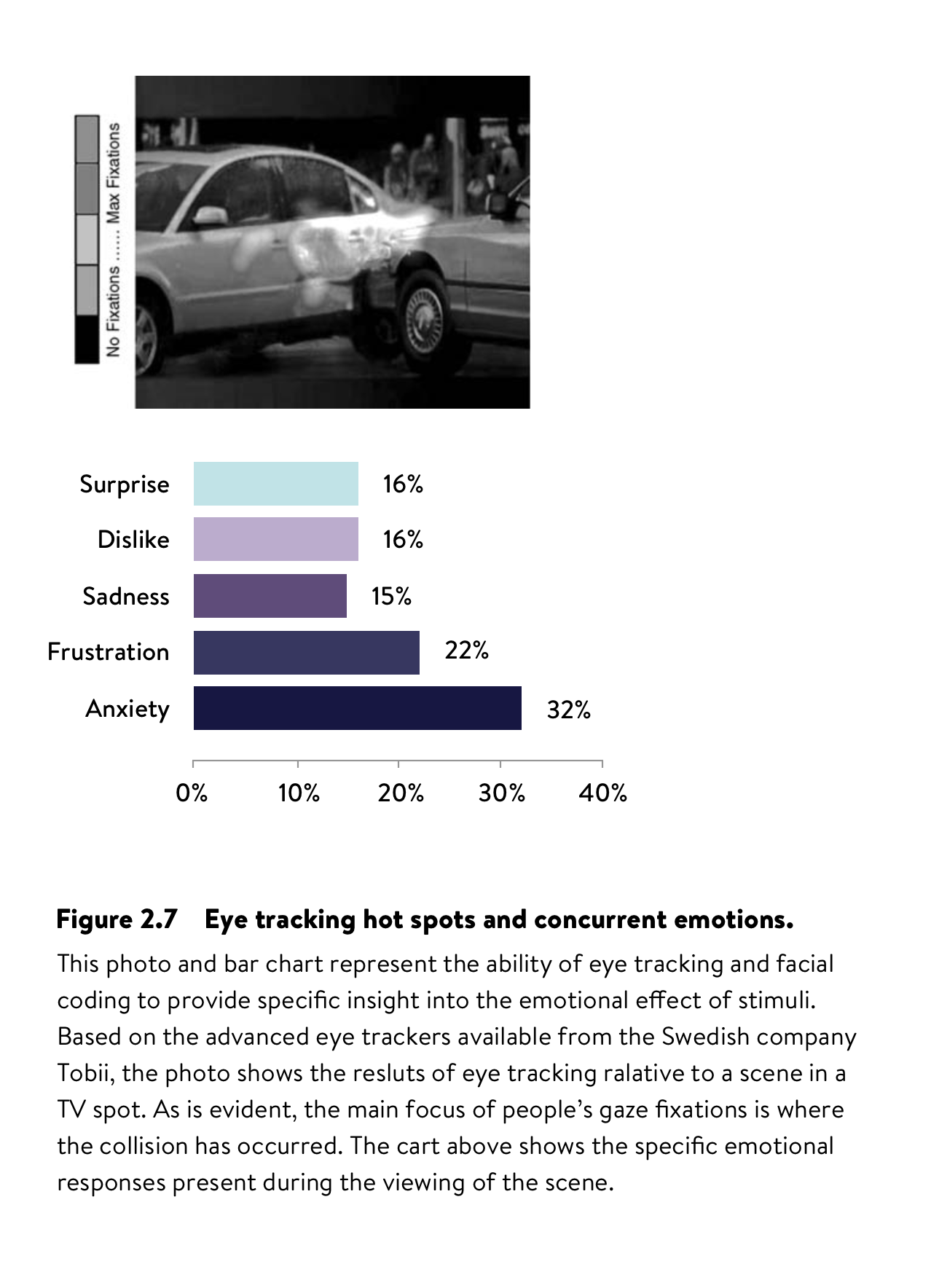 Kombinerar man analysen av känslor med eye-tracking så kan man få reda på mer om vad det är som frambringar vilka känslor. T.ex. så kanske vi ser att “pop-up” videoannonsen på vår nyhetssajt tar fokus och skapar stor irritation när den dyker upp, eller att något i vår personals uniform stör.