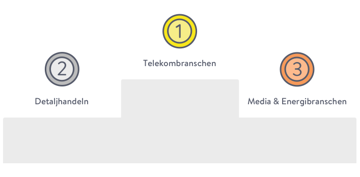 Allra bäst var telekombranschen, representerade av Telia, Tele 2, Telenor och 3. Det är inte särskilt förvånande – de står ju på många sätt mitt i digitaliseringen. Telekombranschen är bäst i tre av de sex kategorierna: digital marknadsföring, e-CRM, och mobilanpassning. Branschens sämsta område är e-handel, där de bara får 6,5 – där finns alltså det största behovet av förbättring. Fast de är knappast ensamma om att inte ha tagit vara på e-handelns alla möjligheter; trots den relativt låga poängen är branschen faktiskt näst bäst i kategorin.