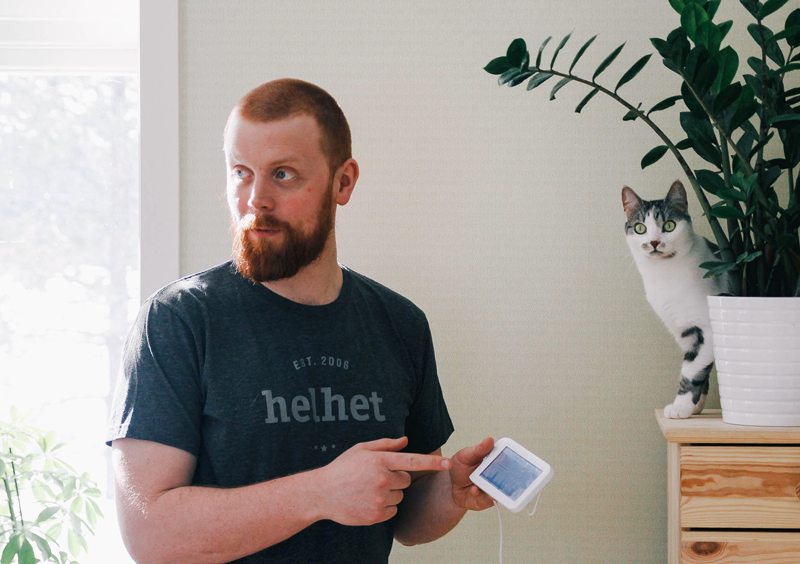 “Målet är väl att man ska kunna koppla ihop om inte allt, så vissa grejer i alla fall. Och göra hemmet lite smart så att det hänger ihop. Att det inte bara är en massa lösa prylar. Och så vill jag ha ut mer av grejerna också. Att man kan uppdatera dem på något vis, få ut fler funktioner.”